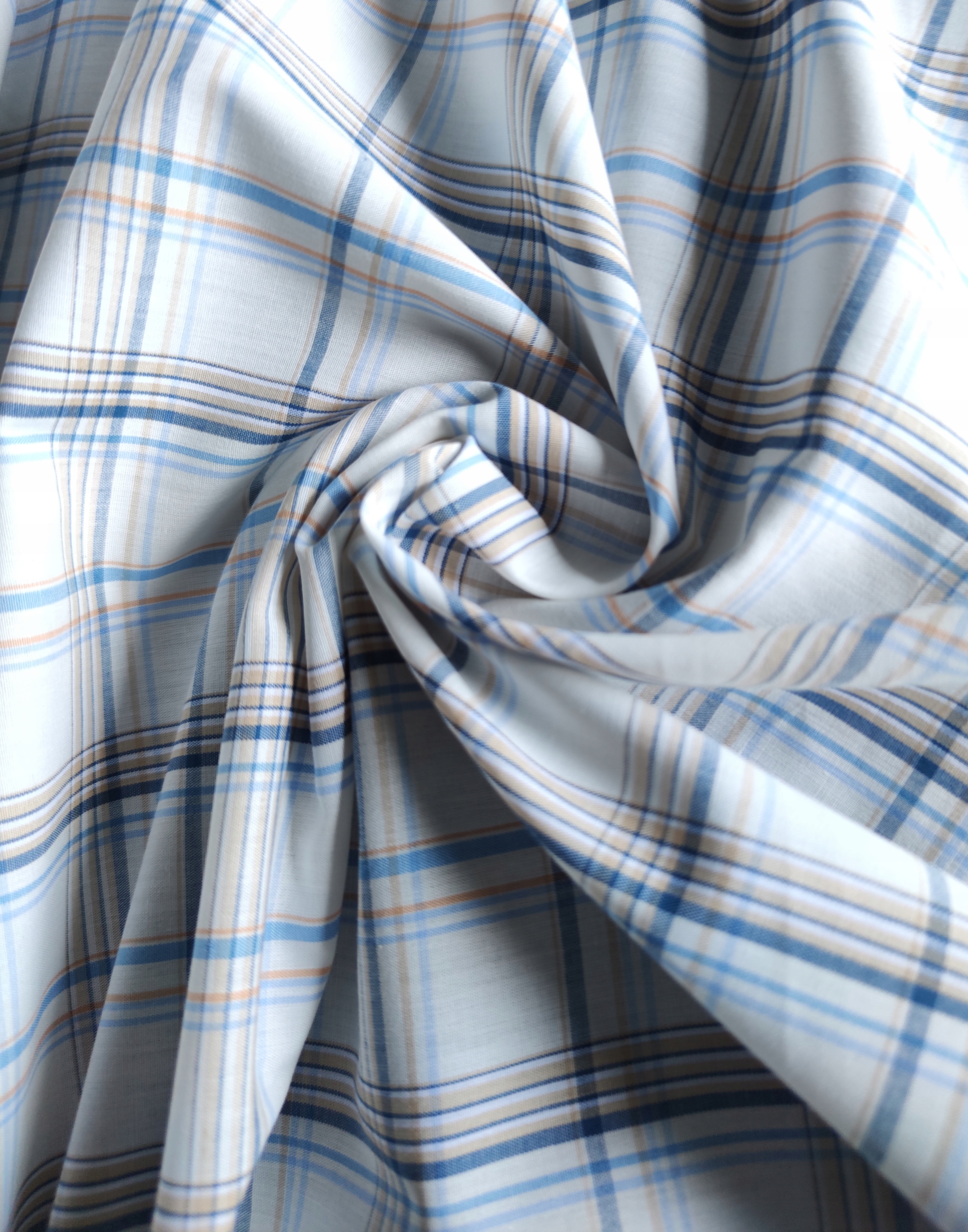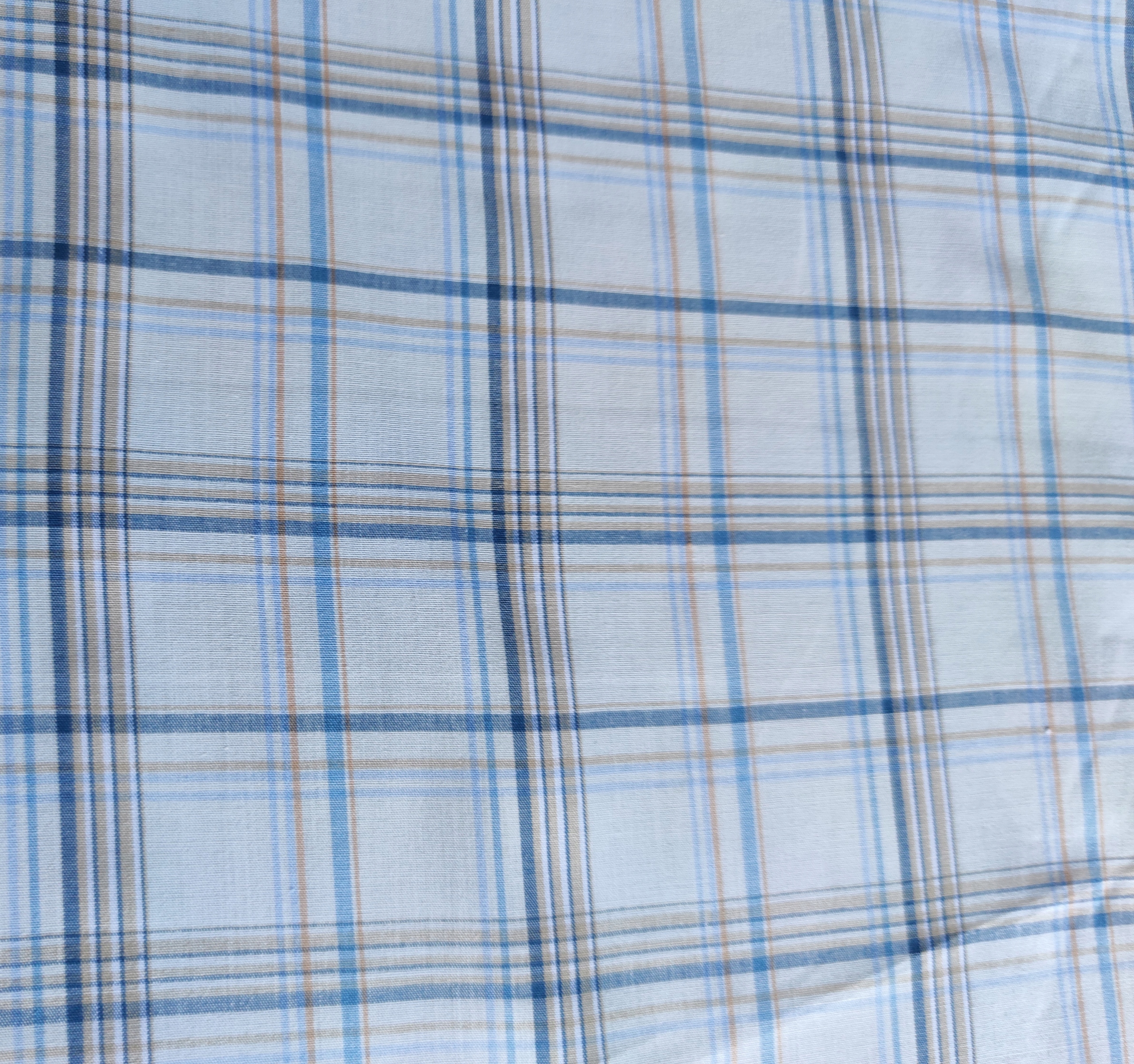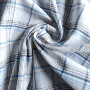 🌿 Tkanina len koszulowy z bawełną i poliestrem – biało‑niebieska krata