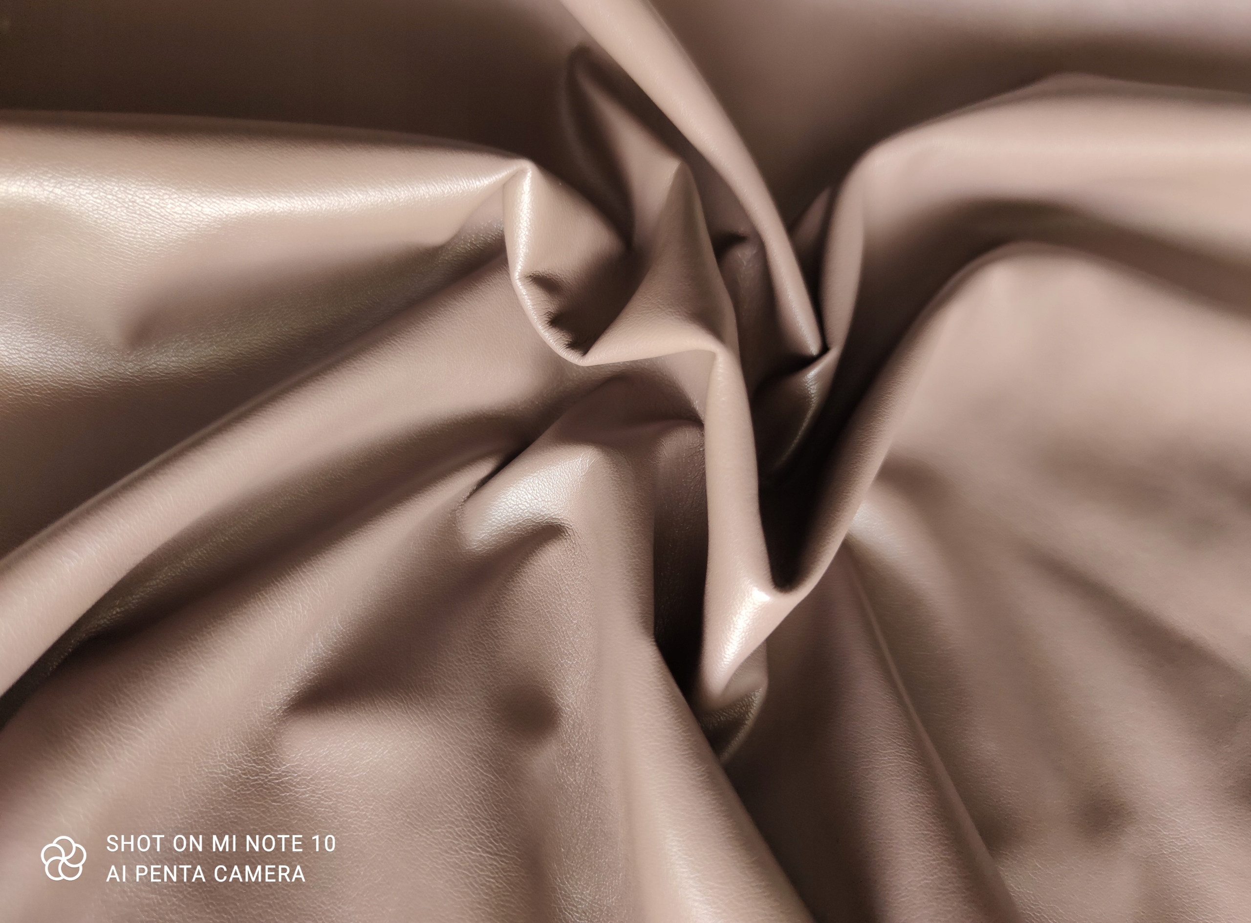 Tkanina ekoskóra w kolorze ciemnym beżowym półpołysk prezentuje nowoczesny wygląd i wysoką jakość. Materiał elastycznie pracuje i dobrze dopasowuje się do sylwetki. Tkanina układa się gładko i zachowuje swój kształt podczas noszenia. Ekoskóra świetnie sprawdza się w projektach odzieżowych o różnym charakterze.
